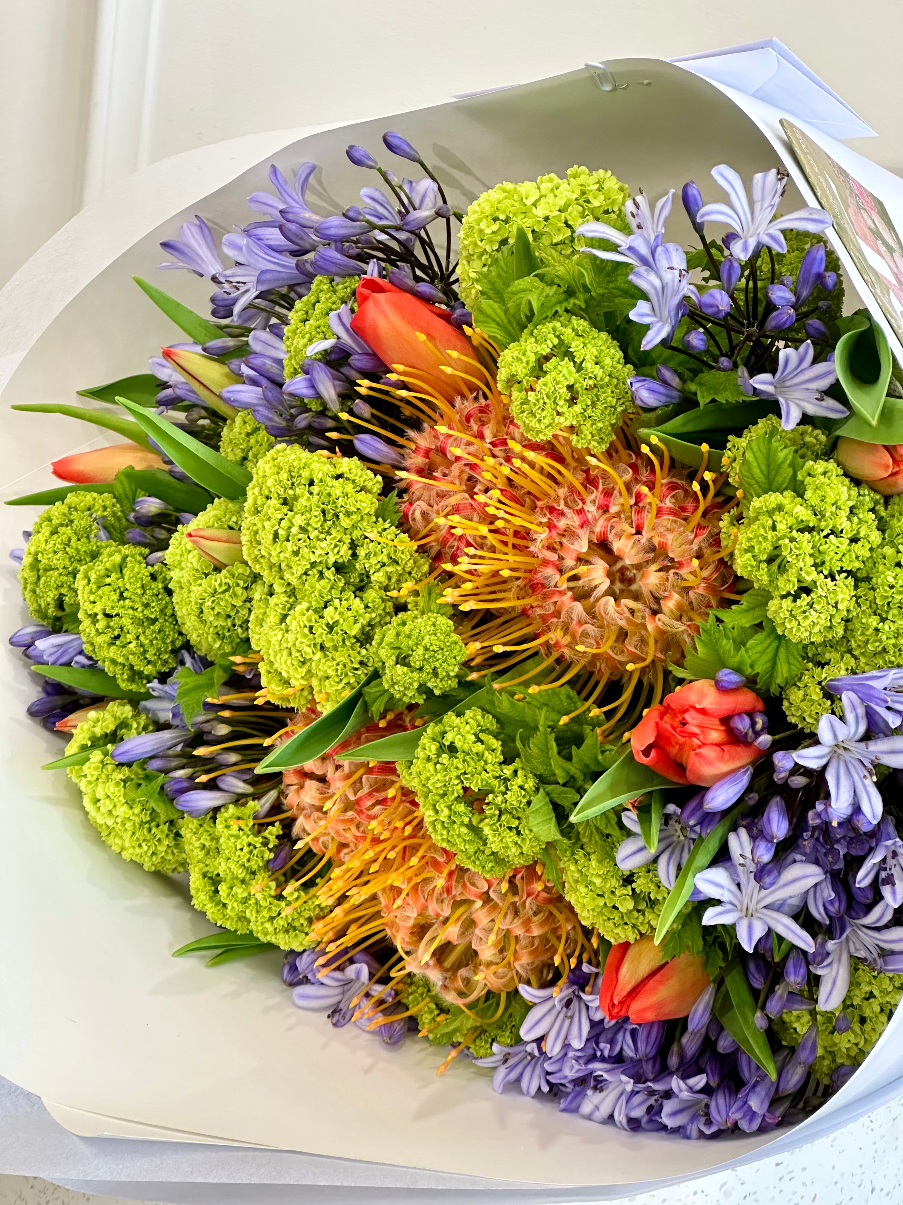 Please keep in mind that flowers are a natural product, and due to change in seasons and availability, what you receive may differ slightly from pictured. However, they will always be fresh and beautifully arranged and wrapped for you.