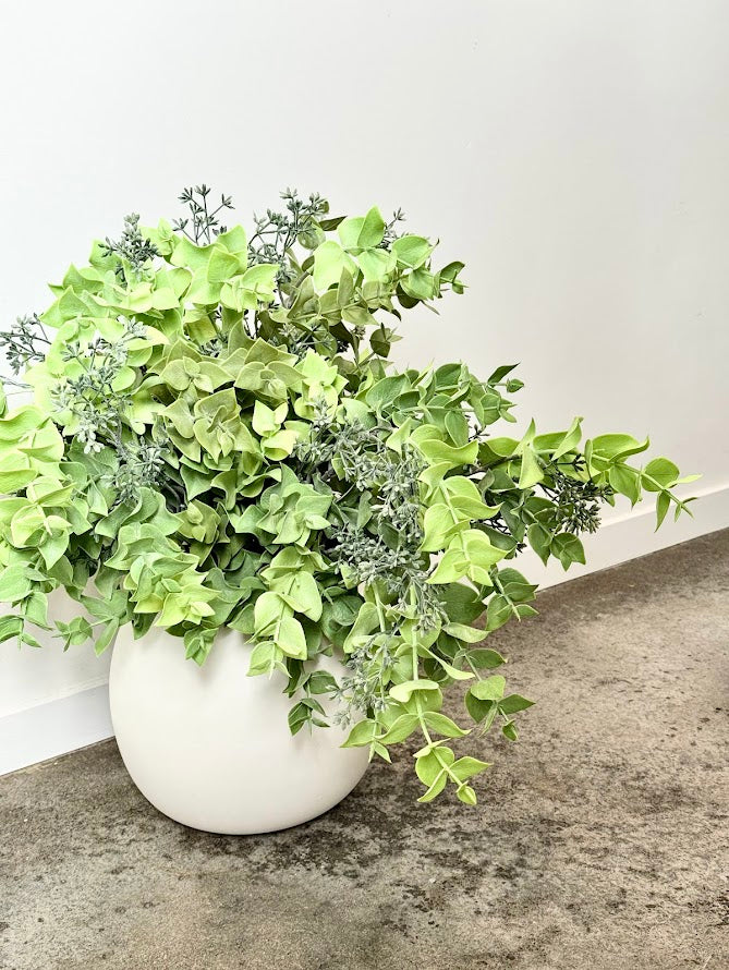 Silk Eucalyptus Arrangment in the Harmie Dome Vase (2 bunches)