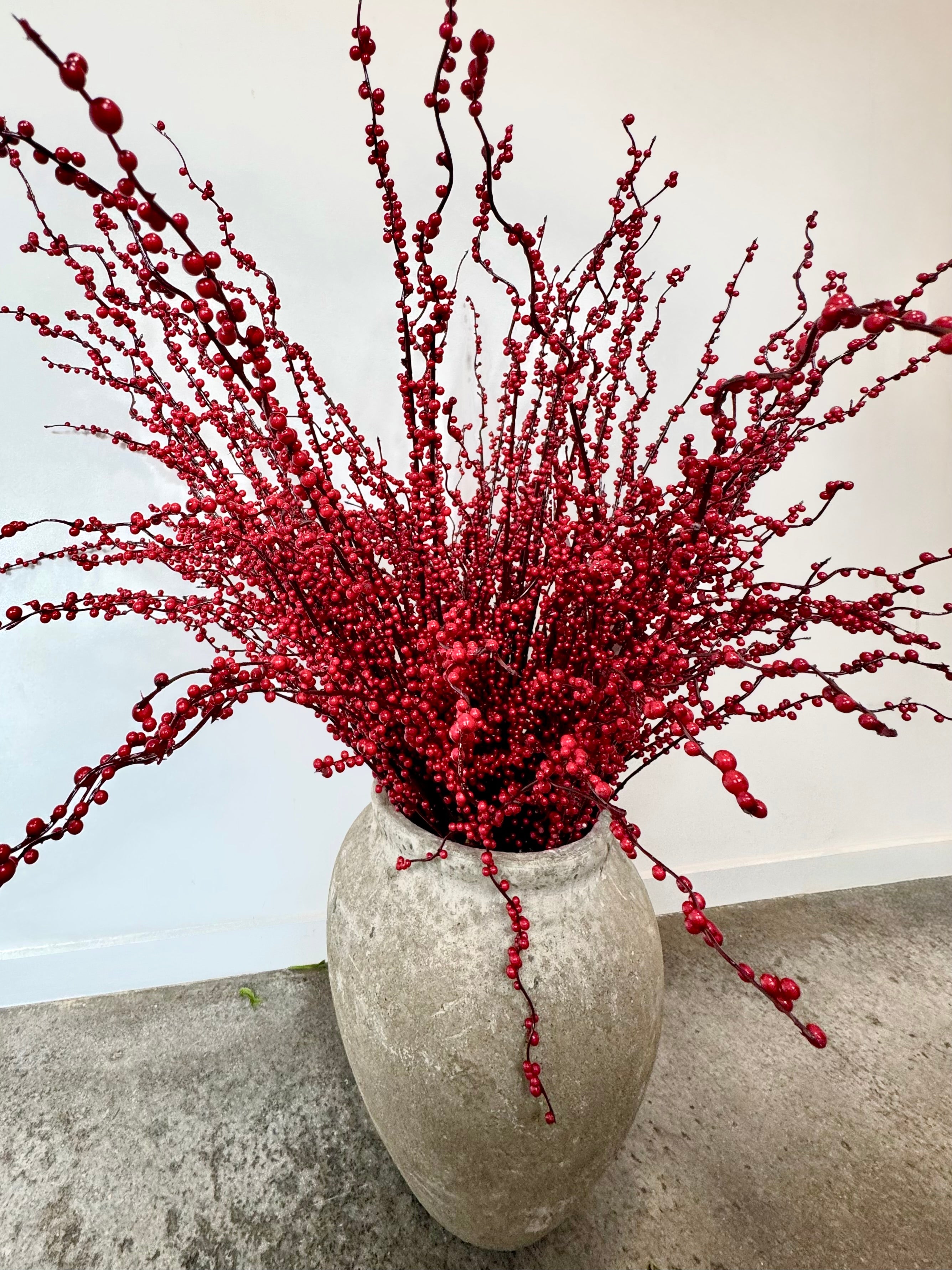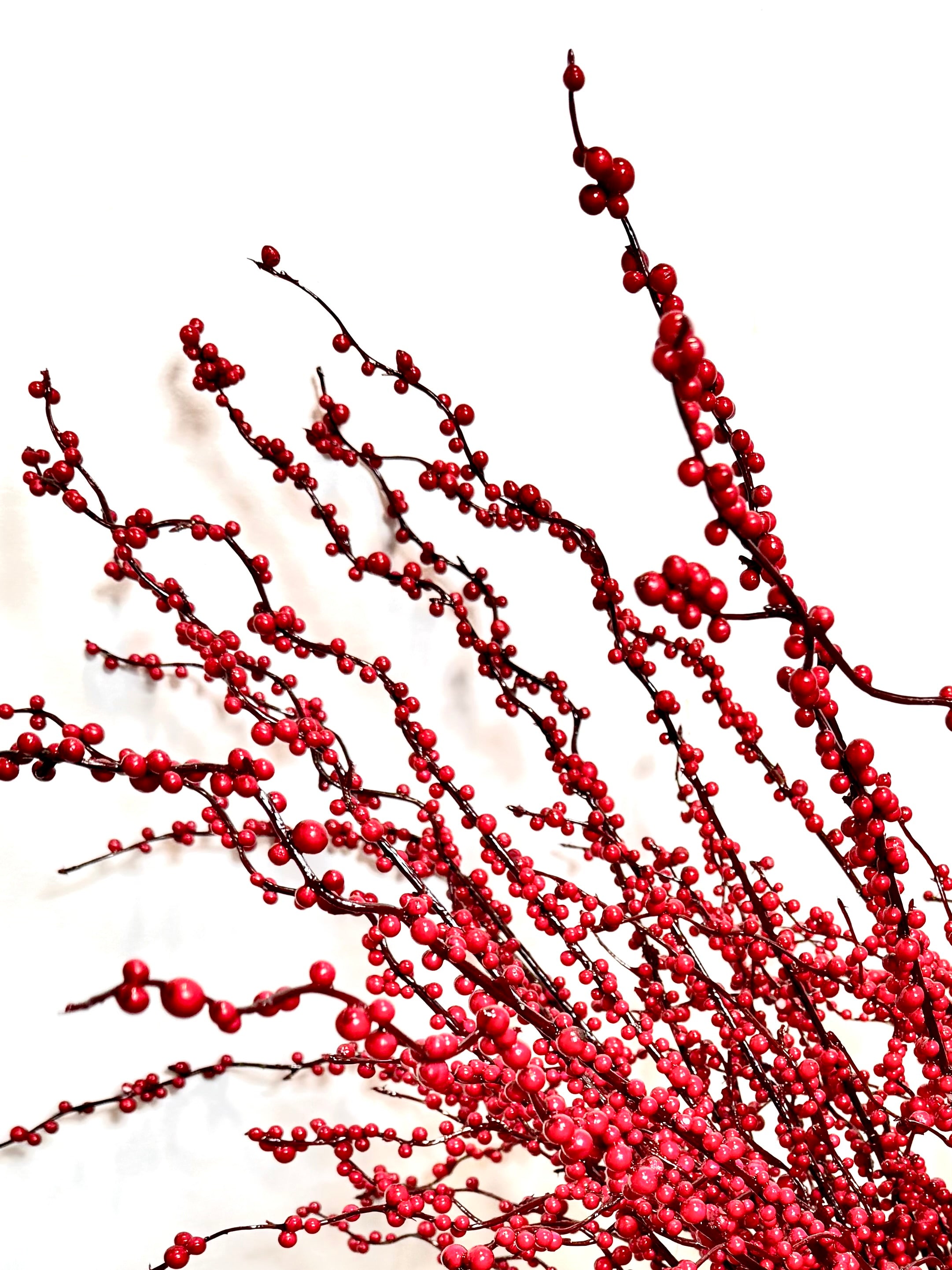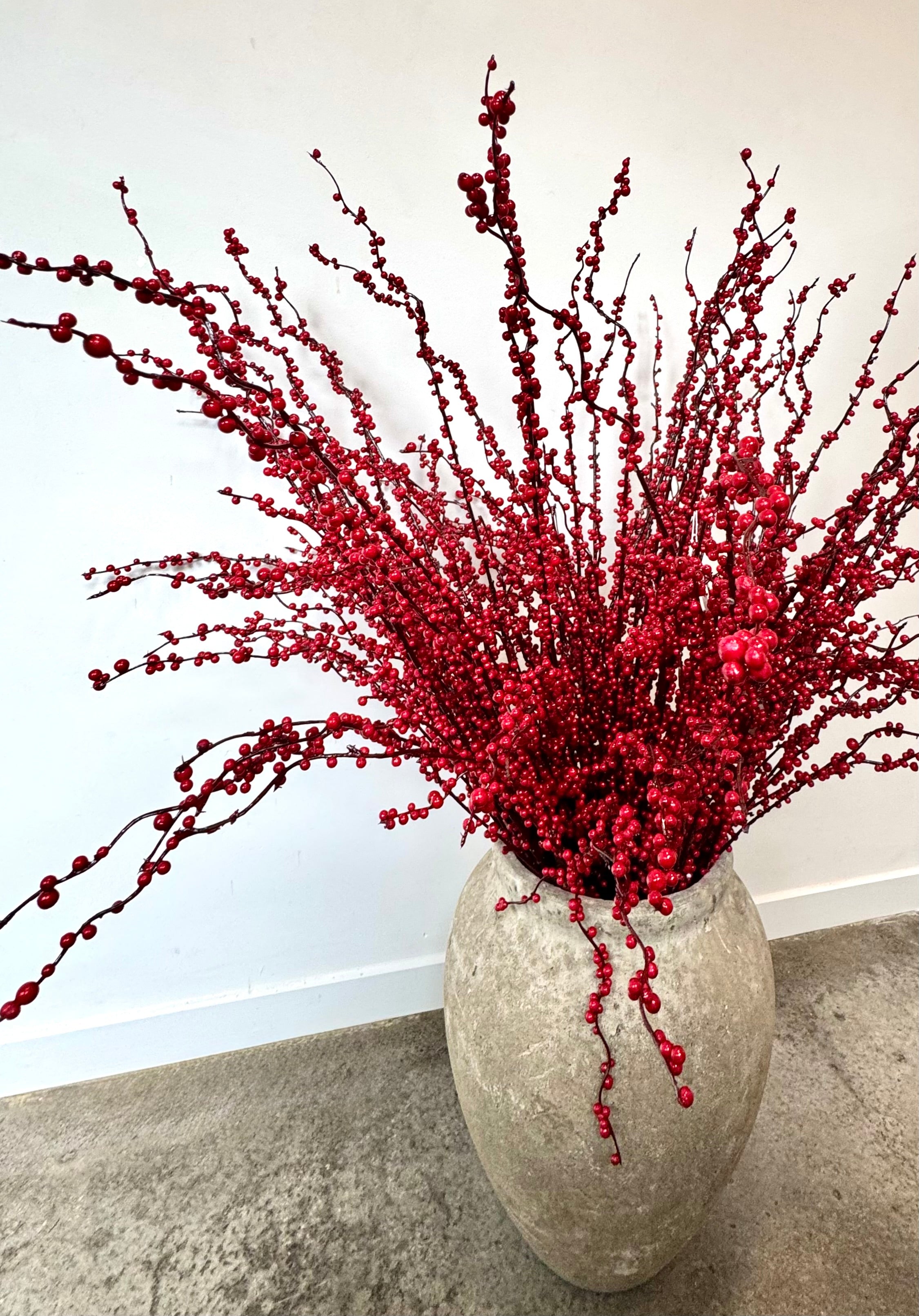 Add bold, festive colour to your arrangements with our Red Berry Multi Stem. Standing 91cm tall, each stem features multiple branches of vibrant, lifelike red berries, perfect for adding height and texture to vases, wreaths, or large-scale holiday displays.